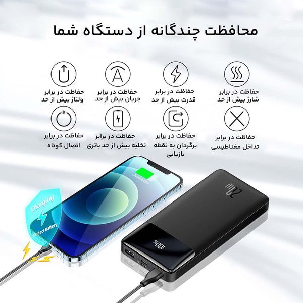 پاوربانک باسئوس مدل PPBD20 ظرفیت 20000 میلی آمپر ساعت