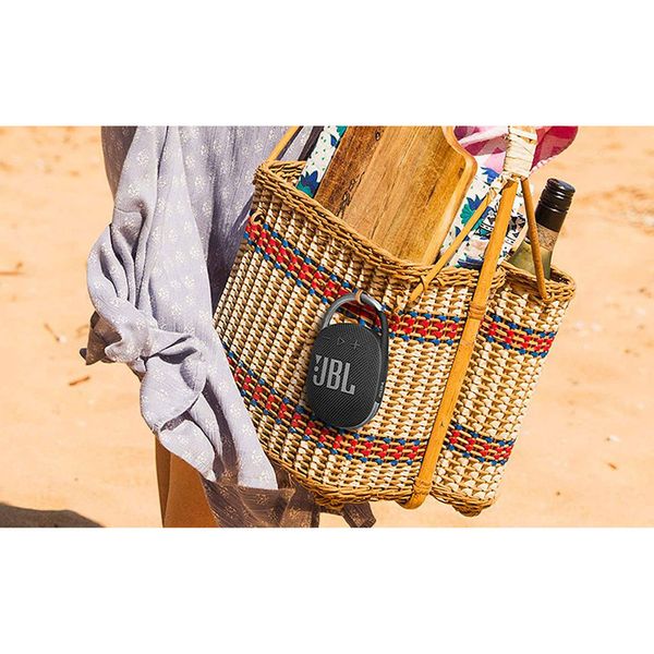 اگر به دنبال یک اسپیکر کوچک و سبک هستید که به راحتی آن را همه جا با خود به همراه داشته باشید، اسپیکر بلوتوثی جی بی ال مدل clip 4 یک انتخاب عالی برای شما است. این دستگاه با ابعاد 130x80x40 میلیمتر فضای بسیار کمی را اشغال میکند و همچون یک گوشی موبایل میتوانید آن را همیشه با خود نگه دارید. این دستگاه با استفاده از بلوتوث نسخه 5.1 و به صورت بیسیم به تلفن همراه، تبلت، لپ تاپ و سایر دستگاههای مدنظرتان، متصل میشود. اسپیکر مذکور از برند جی بی ال برای تامین نیروی مورد نیاز خود، از باتری استفاده میکند. باتری قدرتمند این دستگاه تنها در مدت زمان سه ساعت به طور کامل شارژ میشود. این باتری پس از شارژ کامل، تا بیش از 10 ساعت توانایی شارژدهی دارد که فقط در بهترین اسپیکرهای بازار شاهد چنین چیزی هستیم. توان خروجی کلی اسپیکر بلوتوثی جی بی ال مدل clip 4 برابر با 5 وات است. از دیگر ویژگیهای این اسپیکر بلوتوثی، میتوان به مقاومت آن در برابر آب اشاره کرد. در کنار این محصول، یک عدد دفترچه راهنما و یک کابل Type-C برای شارژ مجدد اسپیکر قرار دارد.